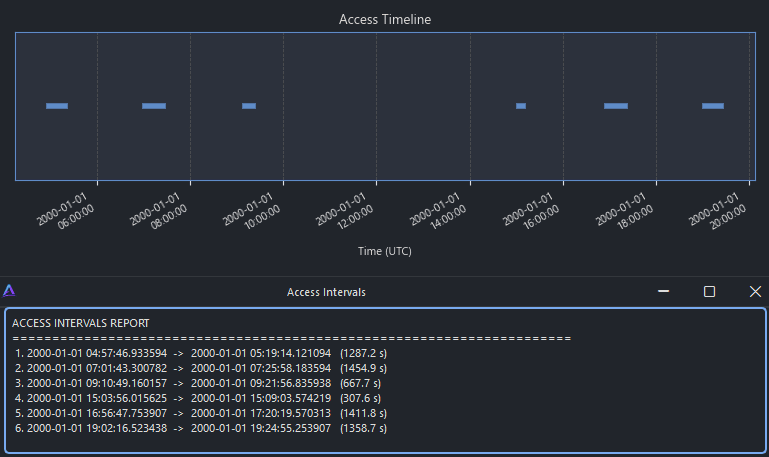 Access analysis allows engineers to study how ground station elevation masks affect visibility, how long each contact lasts and how large the gaps between contacts are.