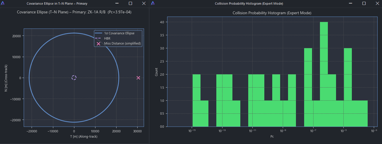 By combining relative geometry with covariance information, engineers can estimate miss distances, confidence regions and potential collision risk — enabling informed decisions on whether mitigation manoeuvres are required.