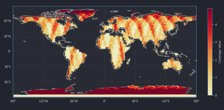 High-fidelity coverage analysis driven by orbit, attitude, and sensor geometry.